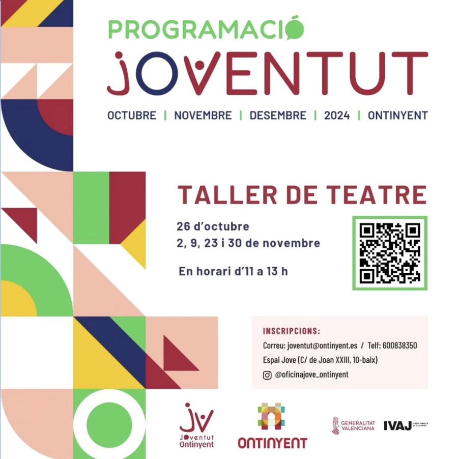 El próximo sábado 26 de octubre, el Espacio Joven de Ontinyent será el lugar de encuentro para la primera sesión de un taller de iniciación al teatro, que continuará los días 2, 9, 23 y 30 de noviembre, siempre de 11:00 a 13:00 horas. Esta actividad se incluye dentro de la variada programación juvenil impulsada por la Concejalía de Juventud del Ayuntamiento de Ontinyent, que ha organizado alrededor de 30 actividades gratuitas para el último trimestre del año, con el objetivo de fomentar la participación y la creatividad entre los jóvenes del municipio.
