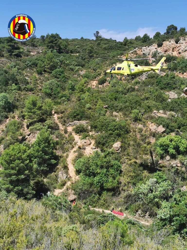 El Consorcio de Bomberos de Valencia ha rescatado un hombre que se había lesionado al sufrir una caída en una ruta en la zona del río Juanes, entre Yátova y Buñol, haciendo barranquismo.