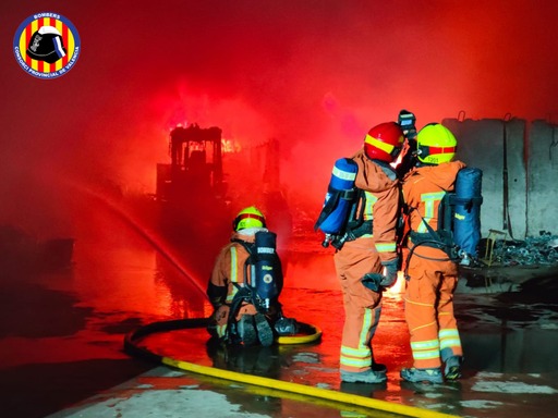 El incendio se ha dado por extinguido a las 6:26 de la mañana. Los bomberos del Consorcio han conseguido que el fuego no llegue a naves colindantes y solo afecte a la nave donde empezó.
