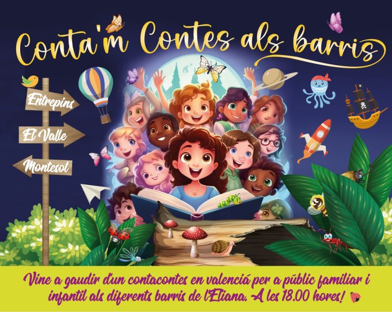 La Concejalía de Educación e Infancia va a poner en marcha una iniciativa dirigida a niños, niñas y familias para que puedan disfrutar de cuentacuentos en tres barrios de l’Eliana. Tras el éxito del cuentacuentos en el parque, que se lleva a cabo en el mes de junio desde hace años, esta experiencia que se presenta bajo el título de ‘Conta’m contes als barris’, pretende acercar esas historias que enseñan y que tratan de explicar el mundo con el humor, la música y el teatro.