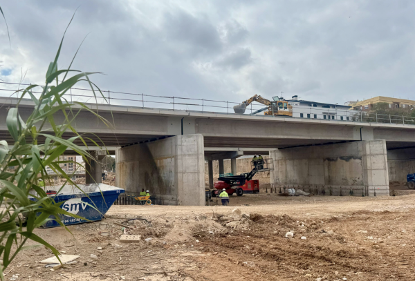 Tras las inundaciones del pasado 29 de octubre que dejaron prácticamente destrozado el puente y la pasarela peatonal contigua, de manera inmediata se procedió al movimiento de tierras; la instalación de las grúas autopropulsadas; la retirada del armamento y desmontaje de la vía descolgada; y la demolición de los elementos estructurales dañados para iniciar la reconstrucción.