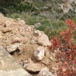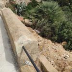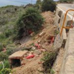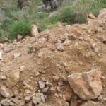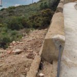 A lo largo de los casi 1 kilómetro de la obra podemos ver donde junto a la zona hormigonada para colocar la nueva acera se han tirado los restos de tierra, derribos, conducciones, directamente a la montaña.