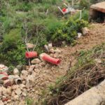 Sobre especies de flora autóctonas se han tirado piedras y tierra en el mejor de los casos. En otros casos, los restos de tubos utilizados pueblan la montaña sin control.