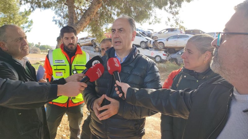 El conseller de Emergencias e Interior, Juan Carlos Valderrama, ha presenciado el trabajo que realiza este grupo de drones de los bomberos forestales en la zona afectada, concretamente en el término municipal de Paiporta, y ha anunciado la incorporación de una nueva aeronave dotada con inteligencia artificial.