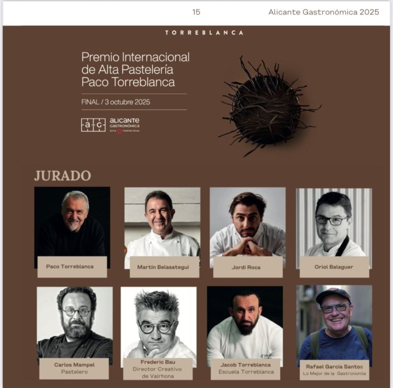 El próximo viernes 3 de octubre, en el marco de la feria Alicante Gastronómica, se celebrará el II Premio Internacional de Alta Pastelería Paco Torreblanca a la Mejor Tarta de Chocolate del Mundo.