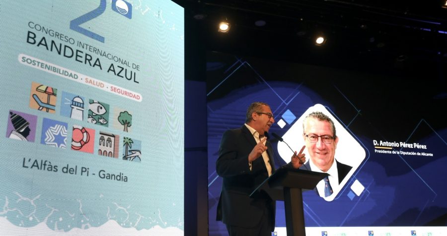 El presidente de la Diputación de Alicante, Toni Pérez, ha participado esta mañana en la inauguración del 2º Congreso Internacional de Bandera Azul sobre sostenibilidad, salud y seguridad que se celebra en la Casa de Cultura de l’Alfàs del Pi. Allí, ha dado la bienvenida a los participantes y ha recordado que Alicante es la provincia de España con más distinciones de calidad en sus playas y puertos y que hay cinco municipios que mantienen de manera interrumpida este sello.