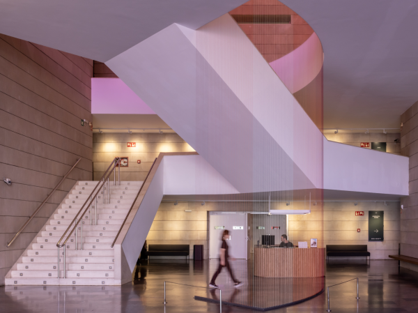 También se muestra una instalación creada específicamente para esta exposición en el IVAM, en el hueco de la escalera del vestíbulo, que lleva por título ‘Donde estaba la línea’, en la que recrea una trama traslúcida donde juega con la luz que entra por el ventanal y la arquitectura de la sala.