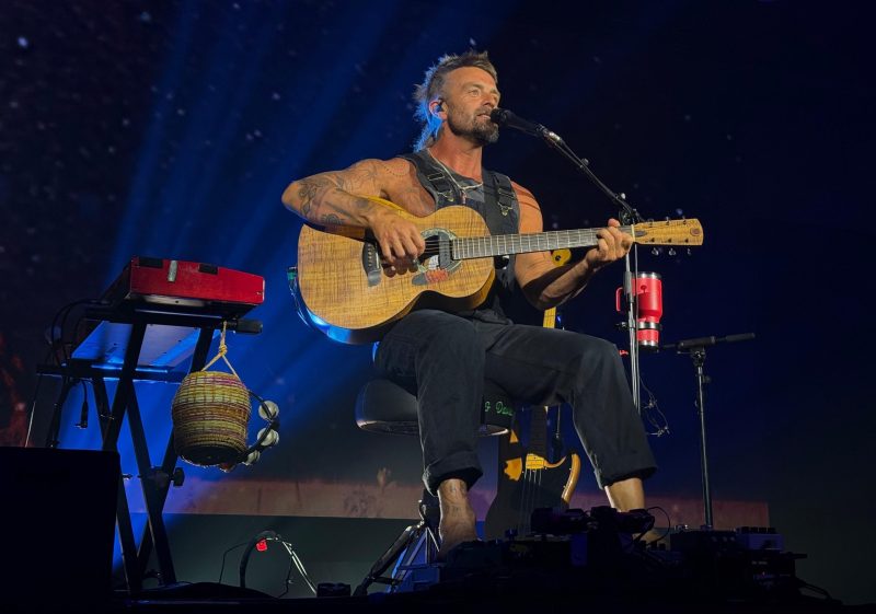 Descalzo sobre el escenario, como suele hacerlo siempre, el australiano ha repasado las canciones más destacadas de su discografía, que respiran una profunda conexión espiritual con la naturaleza. Lo ha hecho acompañado de hasta 5 instrumentos de forma simultánea, entre los que ha sobresalido su característico didgeridoo, un instrumento de origen australiano que ya es parte de su sello de identidad.