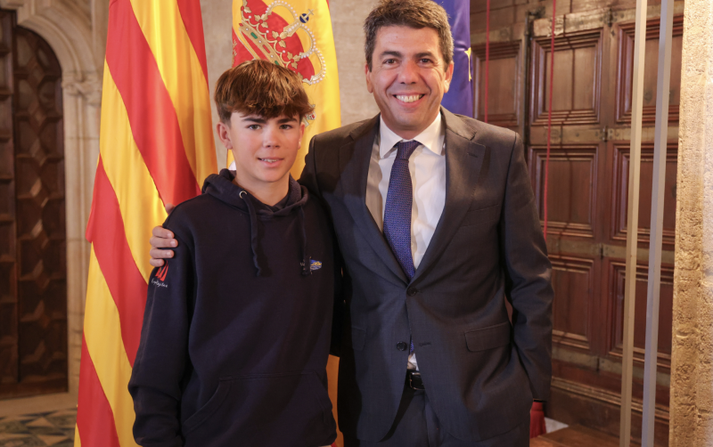 Mazón ha destacado la trayectoria del joven regatista del Club Náutico de Jávea (Alicante) que, a sus 15 años, ha sido medalla de bronce en el mundial individual y medalla de oro con el equipo español de Optimist en Mar de la Plata, y medalla de oro en la Nations Cup.