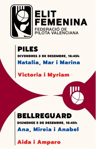 Las partidas de Élite Femenina continúan anunciándose en los trinquets y lo hacen esta semana con dos citas, una en Piles el viernes, y la otra en Bellreguard el domingo.