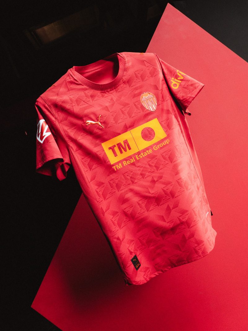 El diseño incorpora el logo de TM Grupo Inmobiliario como Main Global Partner en el frontal de la camiseta y el de Divina Seguros, Aseguradora Oficial del Valencia CF, en la manga izquierda. Ambos, así como el resto de detalles, destacan en color Mediterranean Orange: el naranja con un toque premium recientemente introducido por el Valencia CF en su paleta de colores para adentrarse en una nueva era y que refleja con orgullo el pigmento más emblemático de la ciudad. Un claro homenaje a los tonos del atardecer y a la herencia mediterránea.