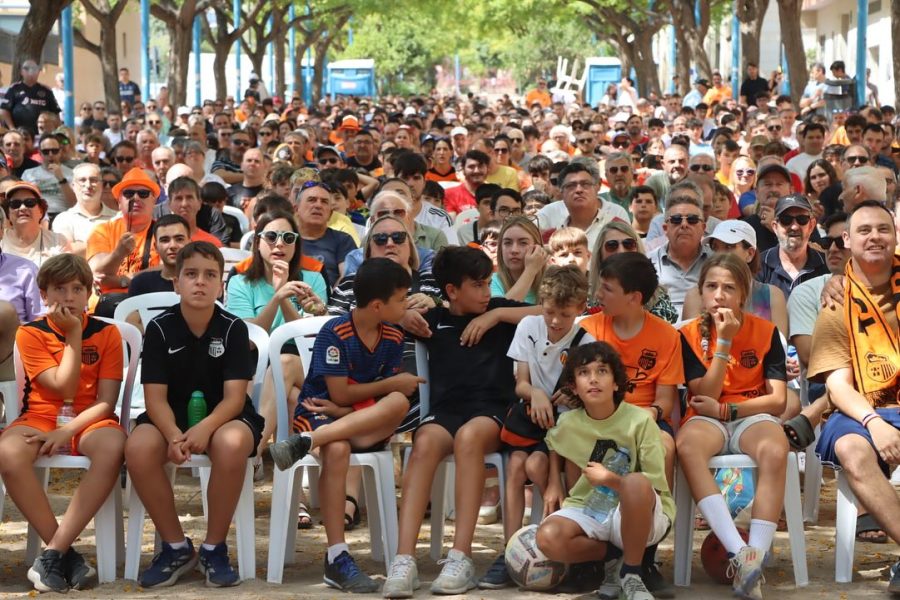El Ayuntamiento de Torrent, a través de la delegación de Deportes que dirige Mª Ángeles Lerma, organizó una gran pantalla para que los más de 1.500 aficionados pudieran vivir juntos el partido. La alcaldesa de Torrent, Amparo Folgado, no quiso perderse este momento y estuvo presente junto a la afición animando al equipo durante los 120 minutos de encuentro. La marea naranja llenó de color y ambiente festivo la calle Mestre Fuertes Julvez, acompañando un DJ y speaker, demostrando una vez más la gran pasión que despierta el fútbol en Torrent.