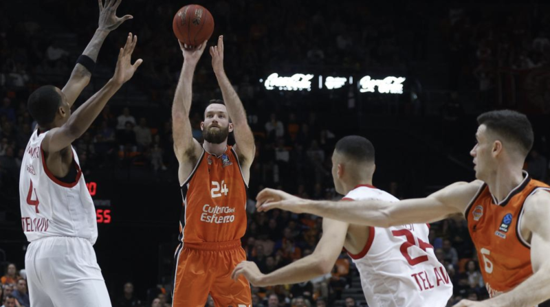 En una eliminatoria que enfrenta a los dos equipos más eficaces ofensivamente de la competición, Valencia Basket consiguió mantenerse cerca de sus registros habituales en el primer partido de la serie, con un rating ofensivo de 1,21 cuando su promedio es de 1,24. Y consiguió bajar las prestaciones ofensivas de su rival en más de una décima, dejando el rating ofensivo de los israelíes en 1,06. El equipo taronja se fue hasta los 91 puntos pese a no tener acierto en uno de sus principales puntos fuertes, el acierto en el triple, anotando solo 4 triples y bajando su eficacia del 38,3% a un 16,7%. Y la defensa del Hapoel Shlomo Tel Aviv, que es la que menos asistencias permite a sus rivales, solo permitió al Valencia Basket dar 18 pases de canasta. Y le hizo bajar de forma significativa su ritmo, obligándole a jugar a menos posesiones.