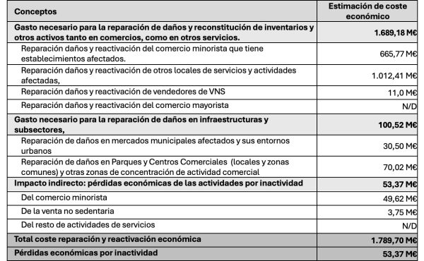 El informe elaborado por Cámara Valencia sobre la evaluación provisional sobre los daños en la actividad comercial minorista en los municipios afectados por la DANA recoge los siguientes datos:
