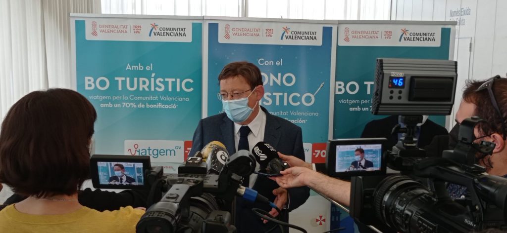 El president de la Generalitat, Ximo Puig, anunció también que ha alcanzado un acuerdo con la ministra de Turismo, Reyes Maroto, para impulsar la puesta en marcha de corredores turísticos seguros entre la Comunitat Valenciana y los principales países europeos.