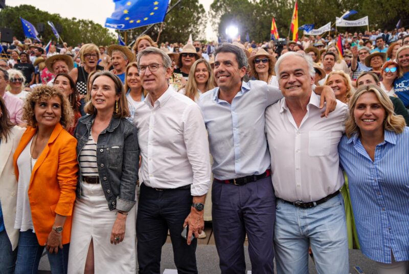 Carlos Mazón ha señalado que “lo más importante es que por fin aquí hay un gobierno que no se calla, que no se agacha y no baja los brazos ante el ninguneo y la falta de apoyo todos los días a la Comunitat Valenciana. ‘Valencians en peu alcem-se’. Todos arriba, todos a construir Europa desde el cambio que ya funciona, ese cambio que ya abandera en toda España, Alberto Núñez Feijóo”.