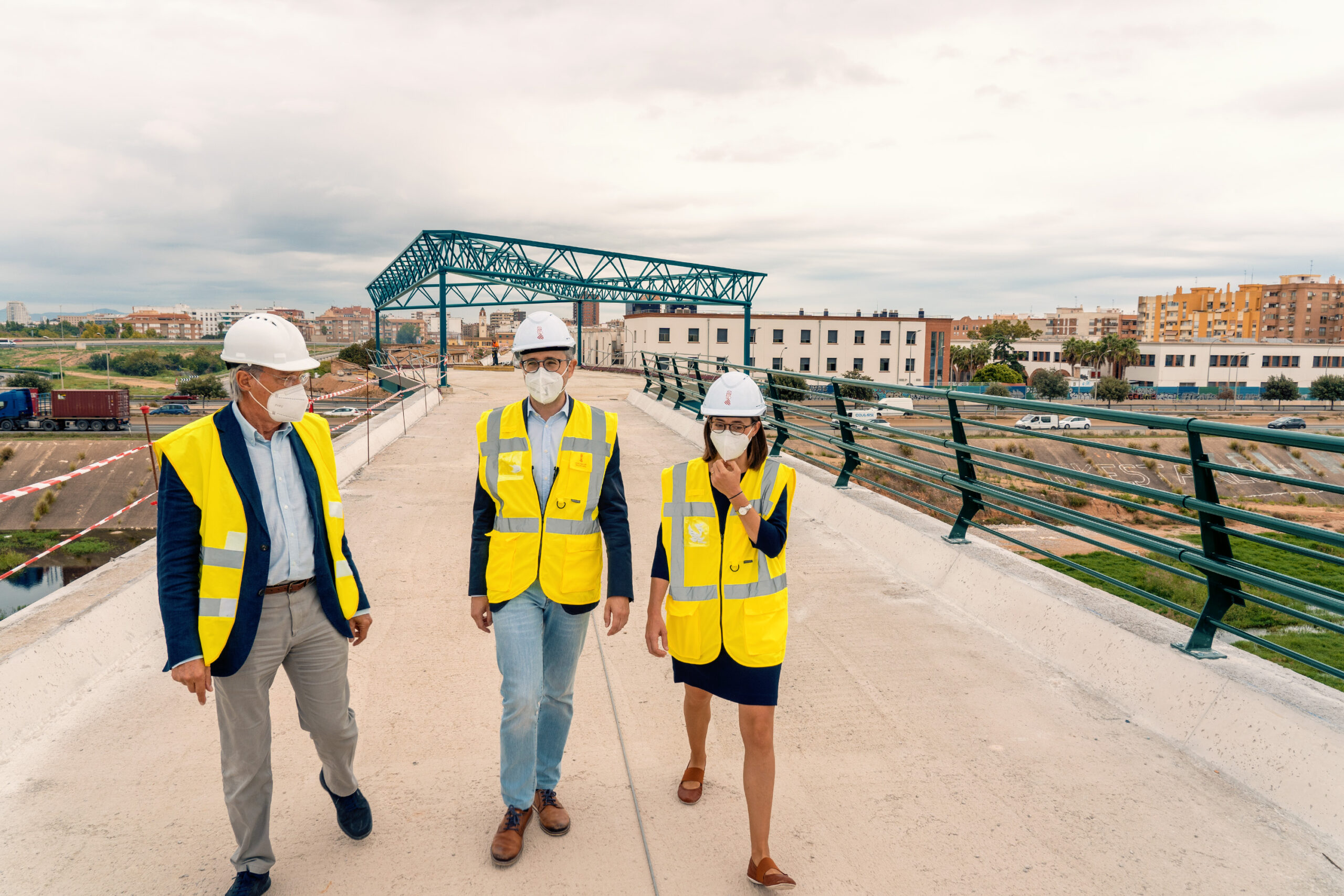 El conseller de Politica Territorial, Obras Públicas y Movilidad, Arcadi España ha hecho seguimiento de las obras de la pasarela que la Conselleria de Política Territorial, Obras Públicas y Movilidad está construyendo sobre la V-30 y el nuevo cauce del río Turia.