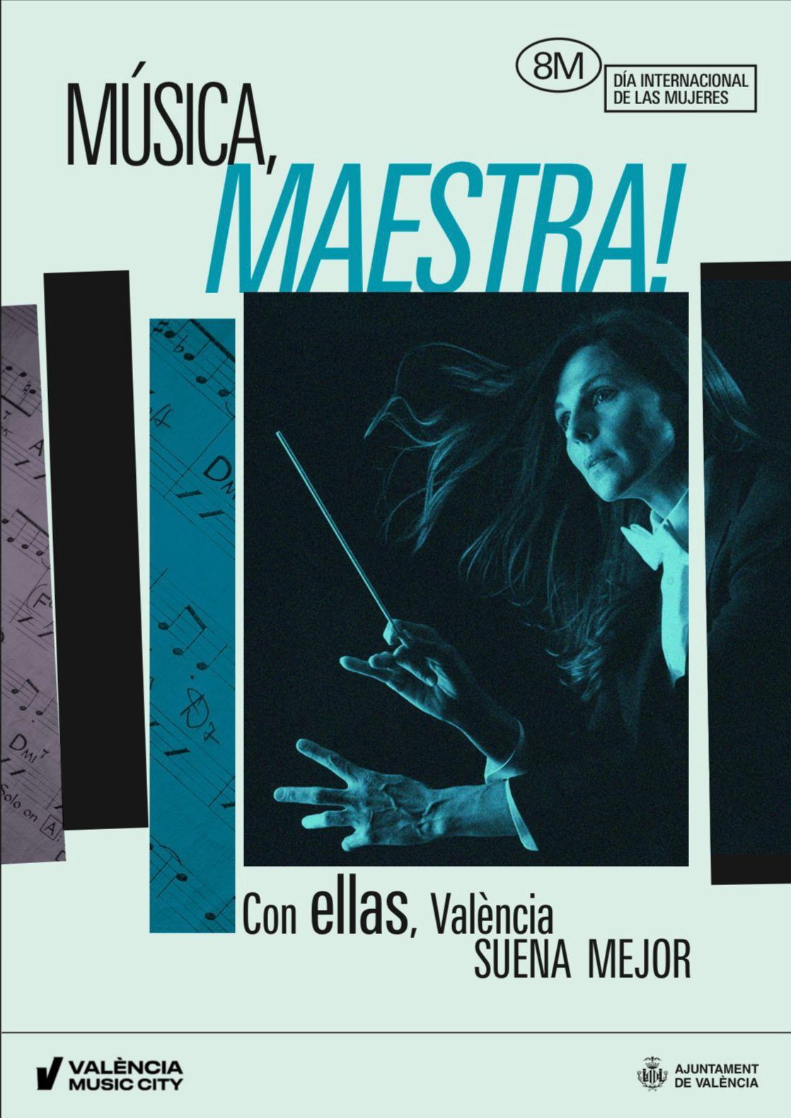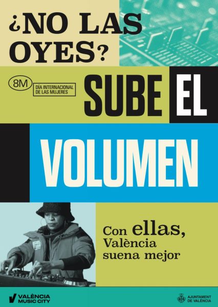 El lema de este año es “Con ellas, València suena mejor” y está desglosado en tres frases: “Música, maestra”, “¿No las escuchas? Sube el volumen!” y “Es el tempo de ellas” con varias gráficas que inciden en las mujeres como directoras de orquesta de música clásica, como dj de música pop y como intérpretes y consumidoras de música en todas las variedades.
