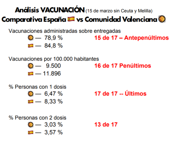 «La vacunación es el nuevo Fake de Chimo Puig» afirma JJ Zaplana. Aportando datos del Ministerio de Sanidad, ya que la Consellería no da datos ni a prensa ni a la oposición, se ve que somos de los ultimos en todo en la vacunación.