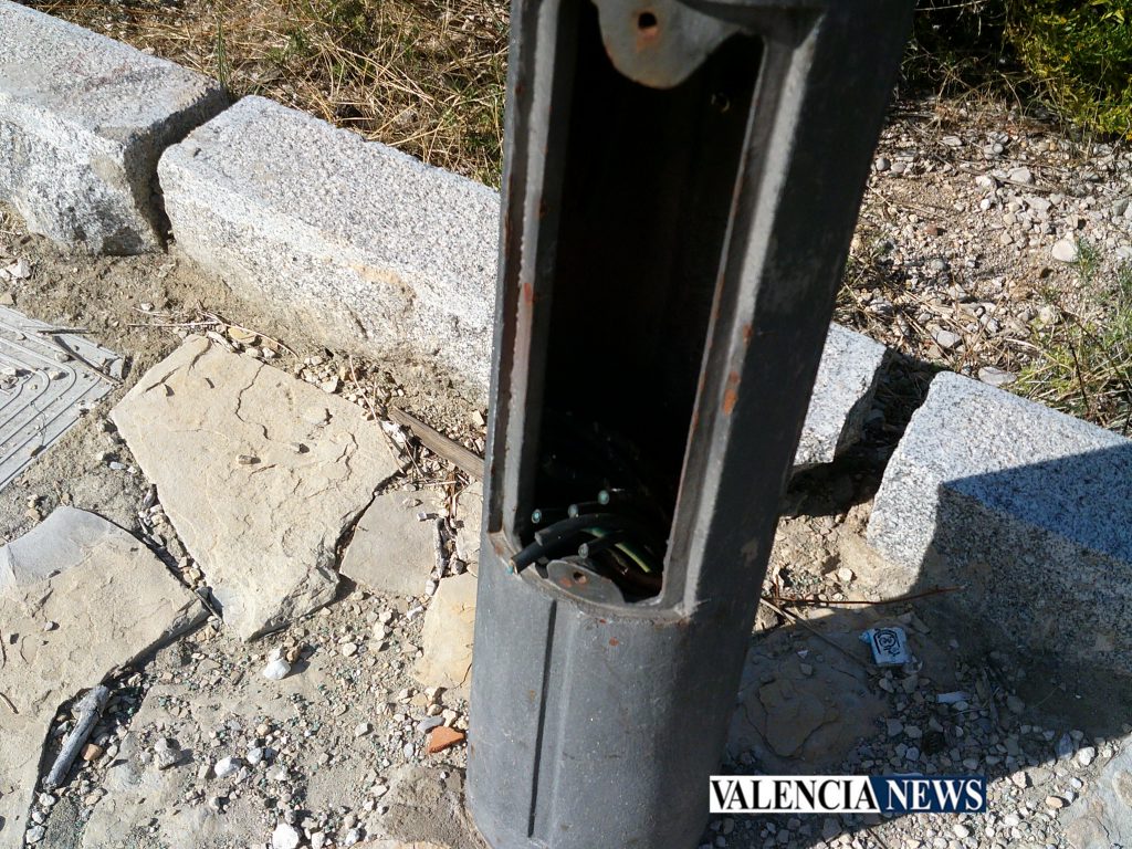 Las farolas del parque de la Calle María Moliner junto a la ZAL tiene todas las farolas sin tapas y con los cables salidos al acceso fácil de los menores. A pocos metros de los juegos infantiles, los cables de la luz salen de las farolas con el consiguiente peligro.