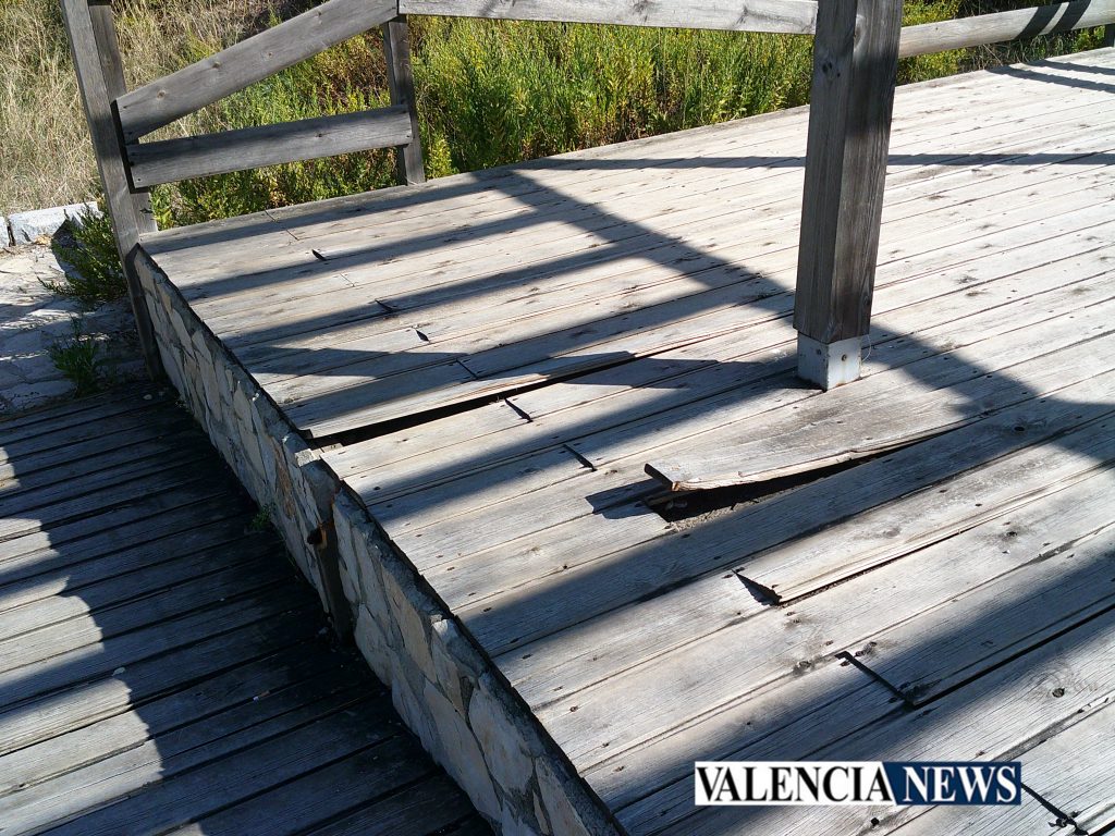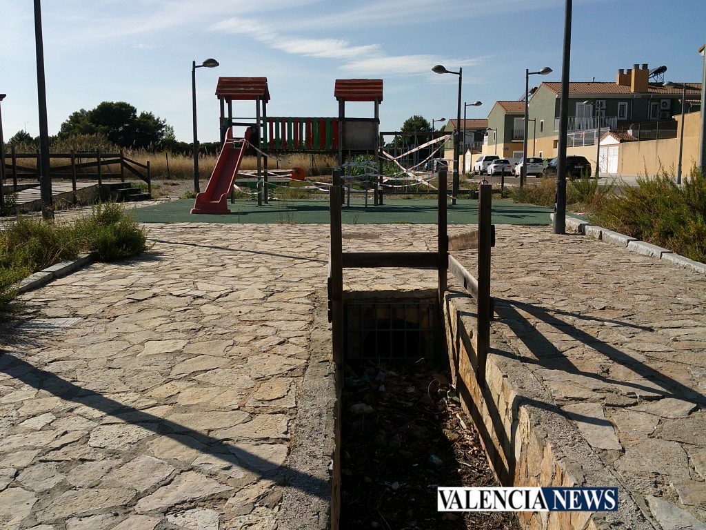 Además, la zona tiene una antigua acequia de un metro de profundidad sin ninguna protección. Existe un mirador, con el suelo roto, clavos salidos y del techado de cañizo sólo quedan algunos alambres colgados.
