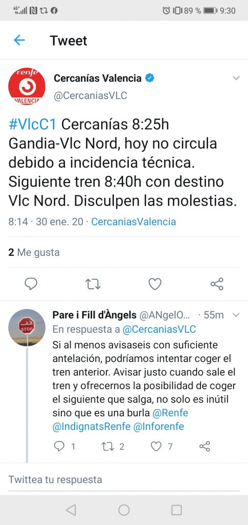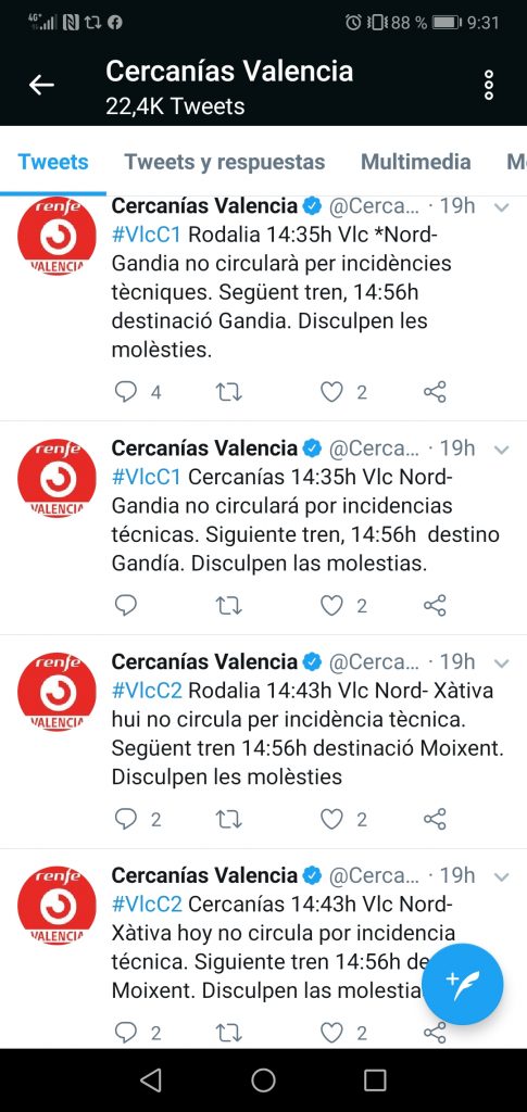 La red de Renfe cercanías Valencia tiene un servicio tan pésimo que en las ultimas semanas se han visto hasta protestas en los andenes de la estación de Renfe Nort. Esto es debido a que el servicio lejos de mejorar, cada vez empeora más.