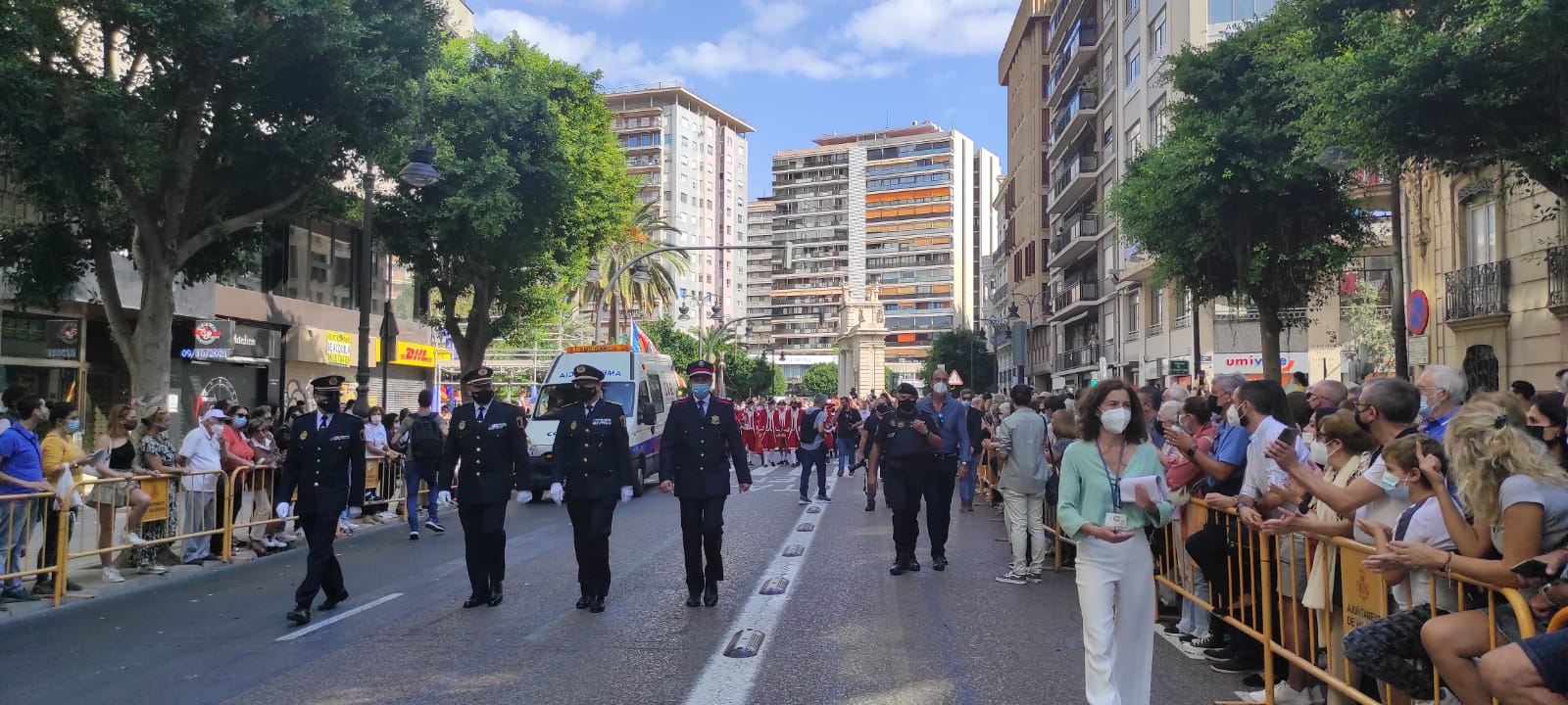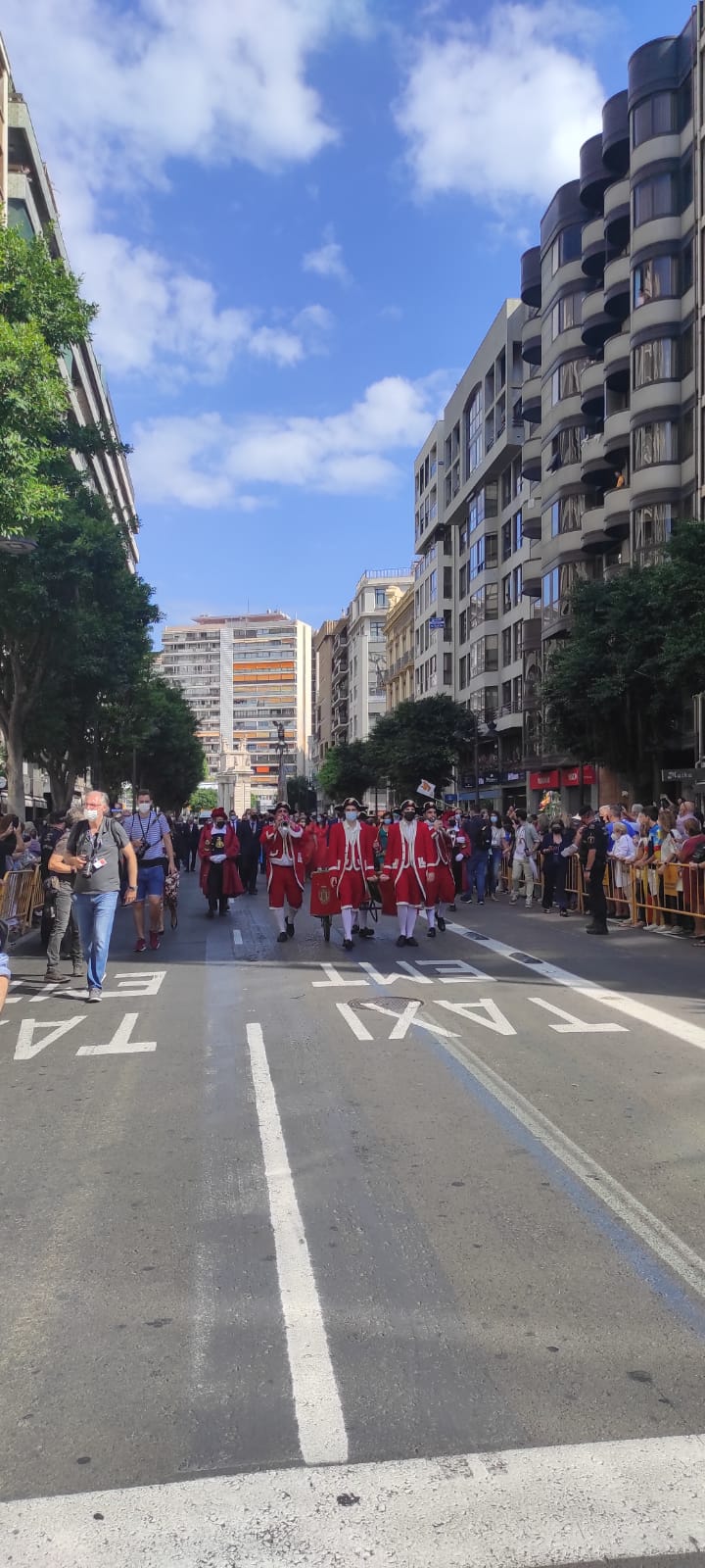 Una vez en el Parterre, cada uno iba por su lado, la comitiva se ha desplazado por el exterior del jardín por la fachada de la Audiencia provincial camino de la calle Cerdán Tallada. Mientras que las autoridades accedian al jardín por el vial contrario.