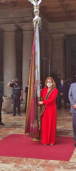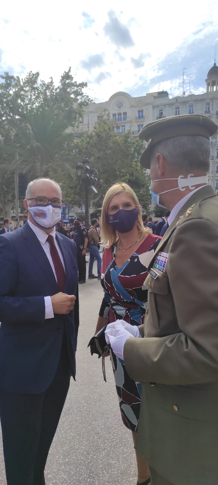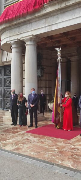 Se ha entonado el Himno, y losurrealista es que de las poca voces que se escuchaban, la de la Consellera de Sanitat, Ana Barceló, alicantina de Sax. El alcalde ni hacía el gesto de mover la boca.
