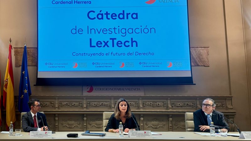 La presentación de la Cátedra LeXTech se ha celebrado en el Ilustre Colegio Notarial de València, entidad que ha sido reconocida como pionera en la aplicación de las nuevas tecnologías al ámbito jurídico.