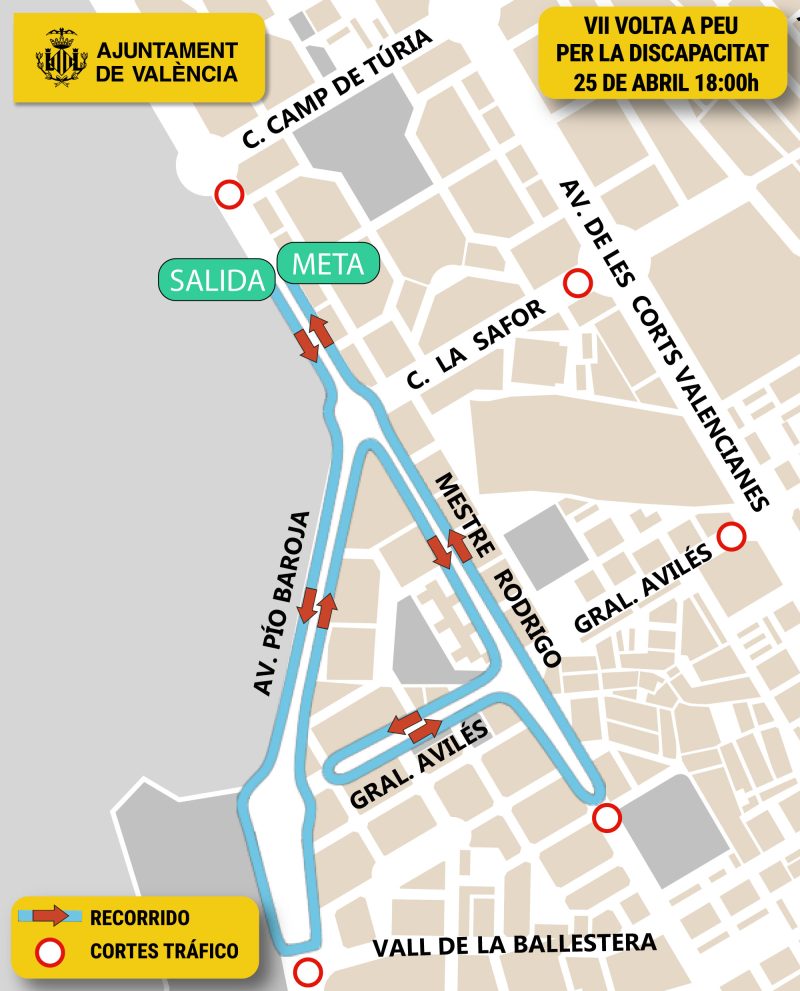 En cuanto a los cortes al tráfico, éstos comenzarán sobre las 8.00 horas y afectarán vías como Enginyer Manuel Soto, Doctor J.J. Dómine, Tarongers o Joan Verdeguer. Está prohibido estacionar en la zona de meta y calles adyacentes como Eugenia Viñes o Lluís Peixó desde el sábado por la noche.