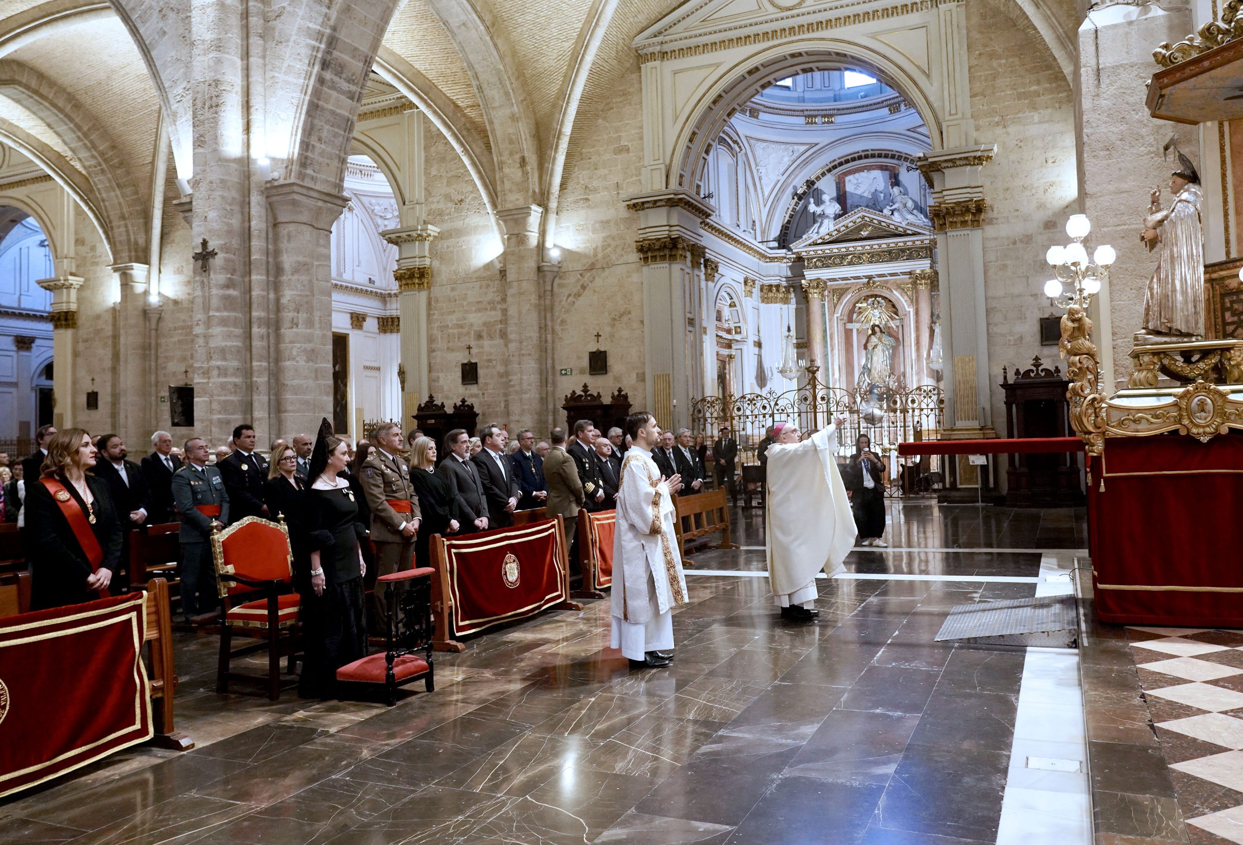 El Arzobispo de Valencia, Mons. Enrique Benavent, presidió la Misa de Pontifical en la solemnidad de San Vicente Ferrer en la Catedral, en la que han participado el obispo emérito de Valencia, Javier Salinas, el obispo emérito de Sant Feliu de Llobregat, el valenciano Agustín Cortés, el Cabildo metropolitano y la Orden de Predicadores. Además han asistido numerosas organizaciones y entidades relacionadas con la figura de San Vicente Ferrer como la Junta Central Vicentina, la Honorable Clavariesa, la Orden de Caballeros Jurados de San Vicente, el Colegio Imperial de Niños Huérfanos así como numerosas asociaciones vicentinas, una amplia representación institucional, encabezada por la alcaldesa de Valencia y miembros del Ayuntamiento, la consellera de Cultura, el Teniente general, entre autoridades militares y civiles.