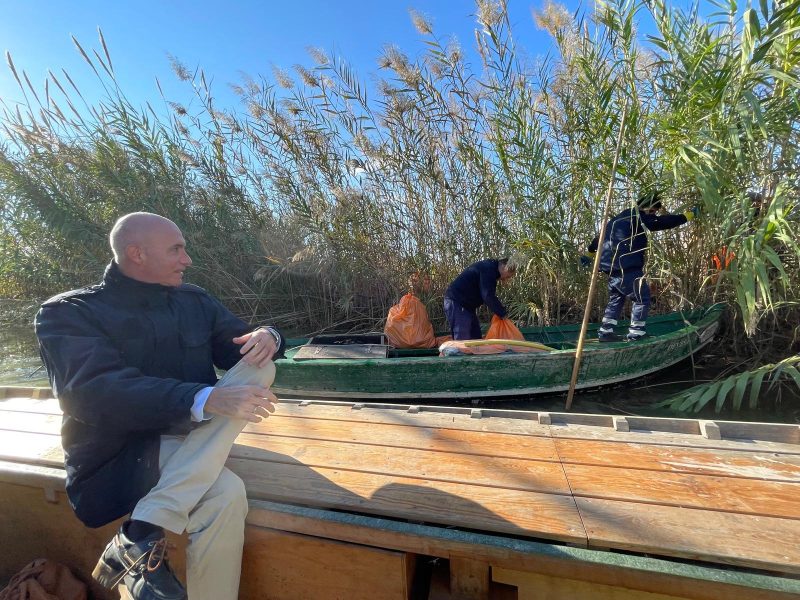 El personal contratado se ha distribuido en dos bloques operativos. Por un lado, ocho marineros especializados en el manejo de embarcaciones tradicionales del lago se encargan de la retirada manual de residuos, localización y contención de vertidos, eliminación de plantas invasoras, restauración de la vegetación y limpieza de acequias. Por otro, dos oficiales y seis peones conforman un equipo de apoyo en el marjal, dedicado a la organización y retirada manual de residuos.