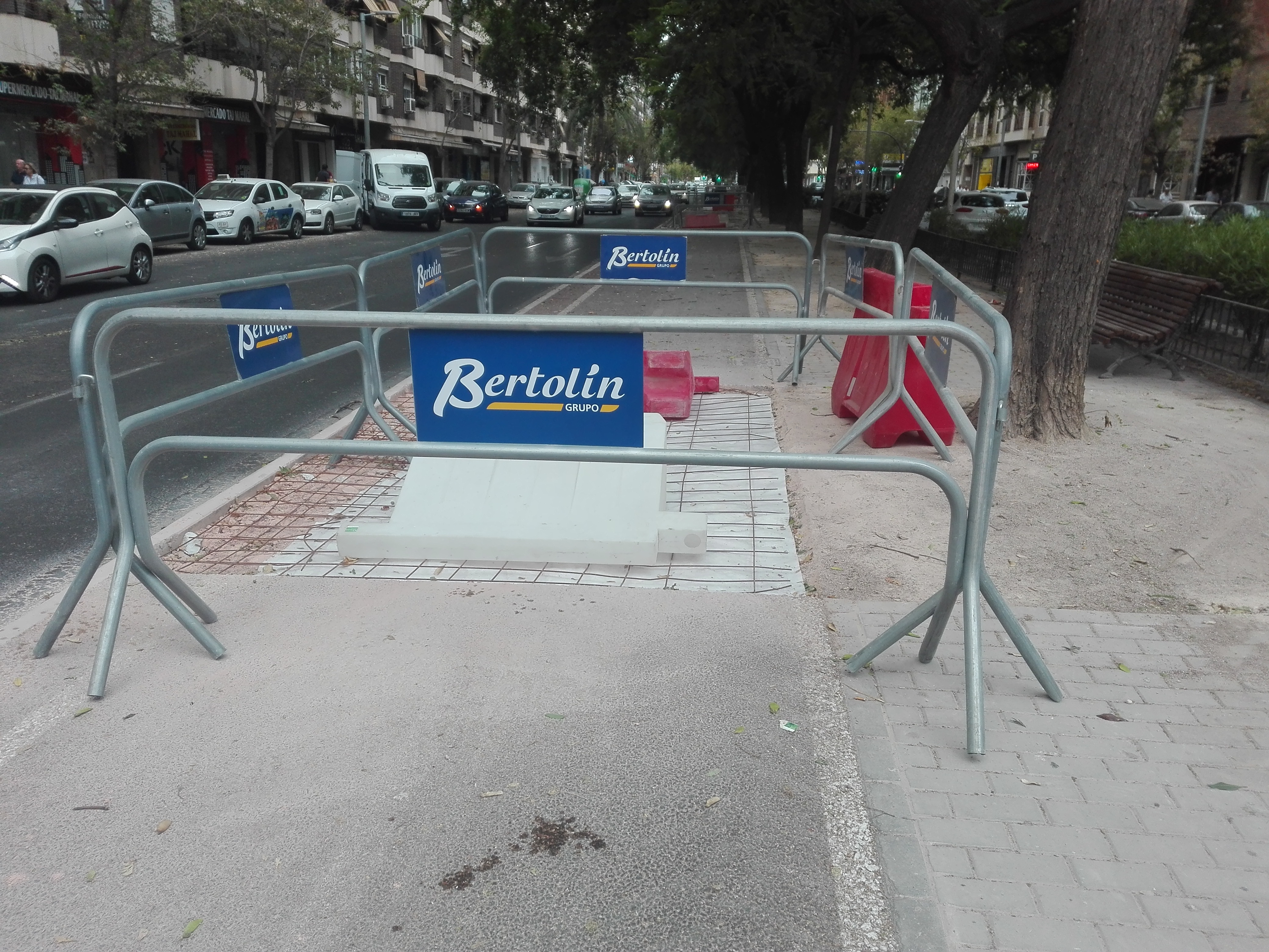 Asímismo, carriles como los del tramo final de Blasco Ibañez se han hecho peligrosos para los usuarios. Anteriormente los baladres de gran porte separaban esta plataforma del resto de la acera. Entró Ribó y se arrancaron y ahora se han plantado alguna plantita y colocado pasos de ladrillos sobre los alcorques, con lo que cada vez más, se invade el carril por peatones debido a esto.