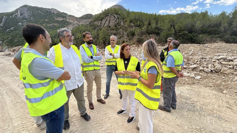 La diputada y el alcalde, acompañados por miembros de la corporación municipal y personal técnico del área de Carreteras, han podido comprobar los avances de los trabajos sobre la carretera CV-395 en dirección Chera y Requena, cuyo trazado sufrió ingentes daños por el desbordamiento del río Reatillo, también conocido como río Sot, con varios tramos completamente arrasados por la fuerza del agua.