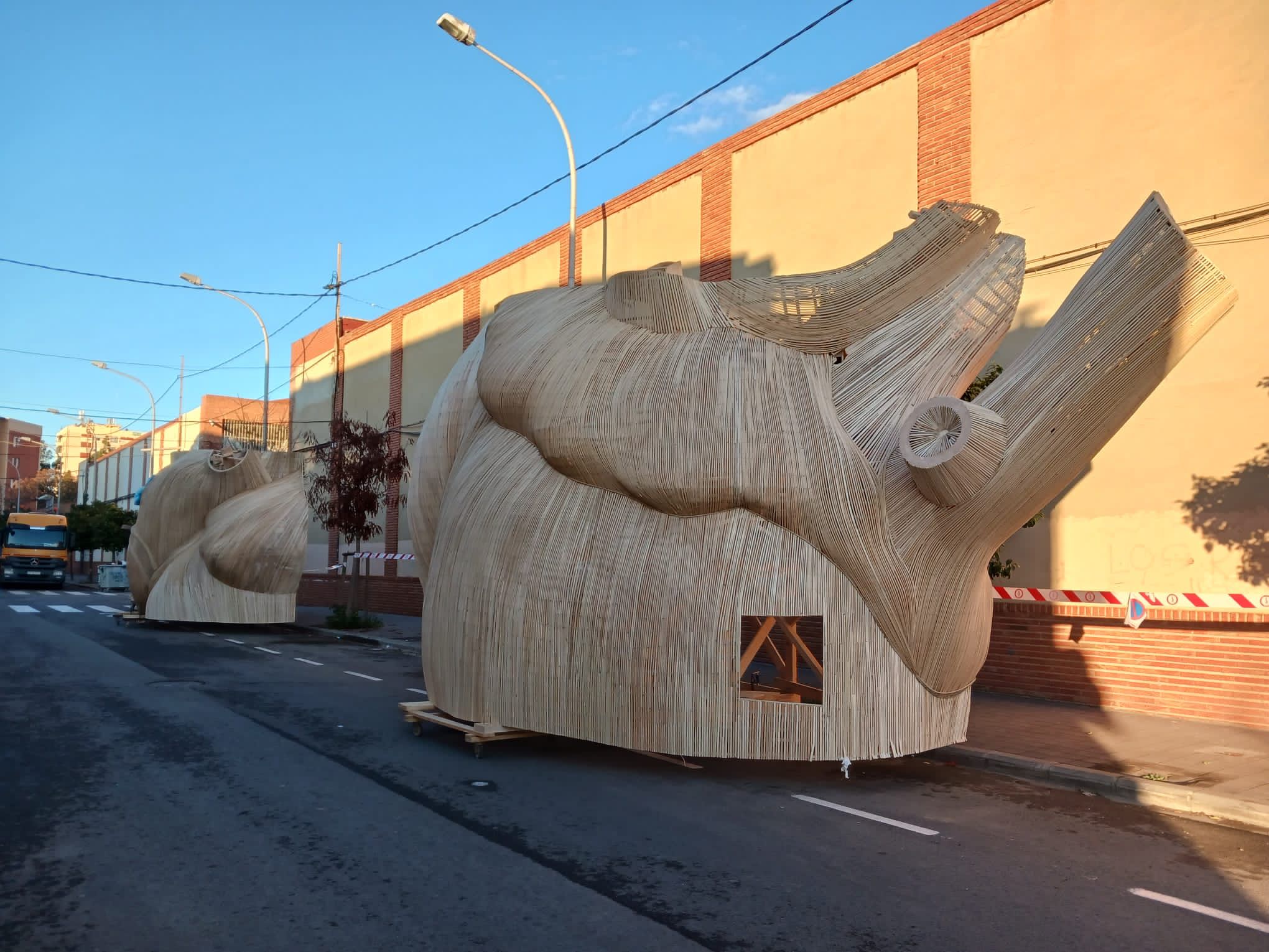 En breve se iniciará el desfiles para «ver plásticos», que es así como se denomina ir por las demarcaciones de las fallas viendo las piezas envueltas en plásticos que conformarán las Fallas que en breve serán alzadas por grúas.