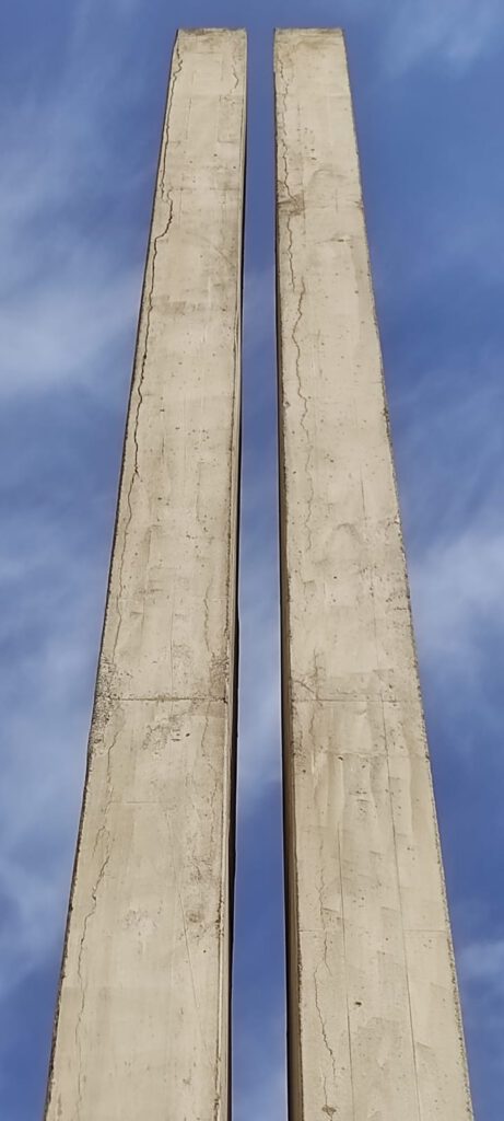 Obra del escultor Ramón de Soto Arándiga, de líneas muy esquemáticas en dos como cuerpos rectilíneos, cubistas, que, en su elevación de 16 metros, casi vertical. Quiere glorificar a los que entonces y en otras riadas perecieron.