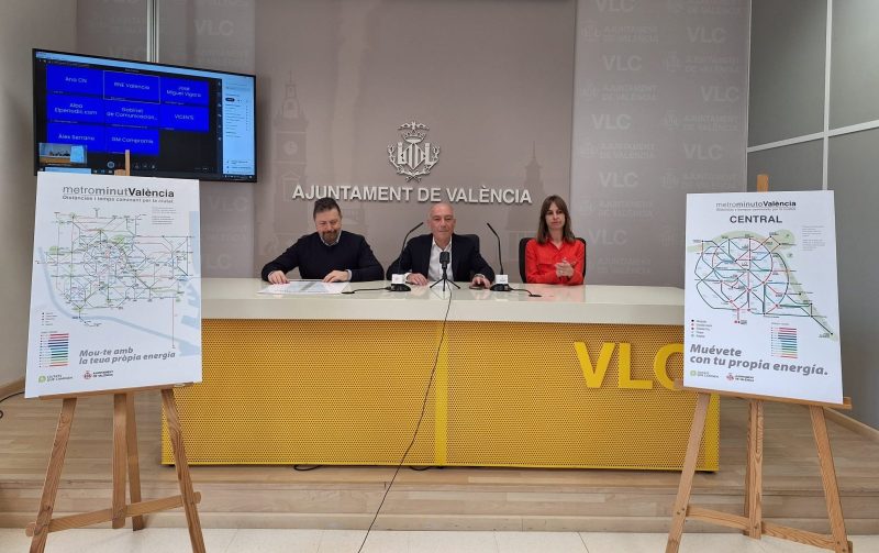 El Ayuntamiento de València ha presentado la campaña ‘Metrominuto’ para animar a la ciudadanía a caminar diariamente en los trayectos que realiza habitualmente por la ciudad. “València es una ciudad mediterránea, compacta, en la que la movilidad a pie es el eje y debe seguir siéndolo y debe mejorarse”, ha señalado el concejal responsable del Área de Seguridad y Movilidad, Jesús Carbonell, en la presentación de la iniciativa junto a Ana Montalbán y Antón Prieto, representantes de la Red de Ciudades que Caminan.